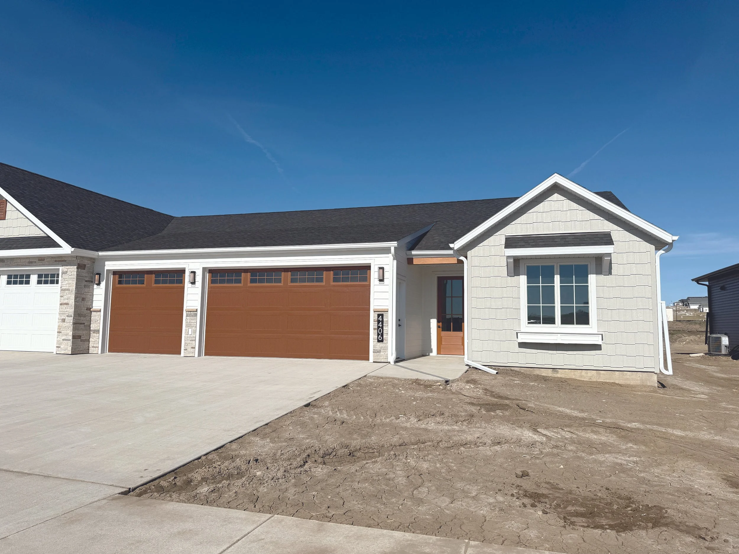 Experience seamless luxury in this high-craftsmanship home featuring dimensional accent molding, designer lighting, and custom finishes throughout. The impressive foyer leads to a great room with soaring vaulted ceilings, decorative beams, and a custom-tiled electric fireplace with floating shelves. The gourmet kitchen boasts quartz counters, a gas cooktop with a pot-filler, a walk-in pantry, and a functional center island. Retreat to the primary suite, which offers distinctive wall panels, a tray ceiling, and an elegant bath with a custom shower and dual-sink vanity. Additional highlights include two guest bedrooms, one featuring a dramatic geometric accent wall, a functional mudroom, and a convenient laundry room. The exterior features a covered concrete patio for effortless entertaining. Rounding out this home is an oversized, heated 3-car garage, fully finished with epoxy floors, water, and floor drains. This property perfectly blends modern amenities with sophisticated architectural style.