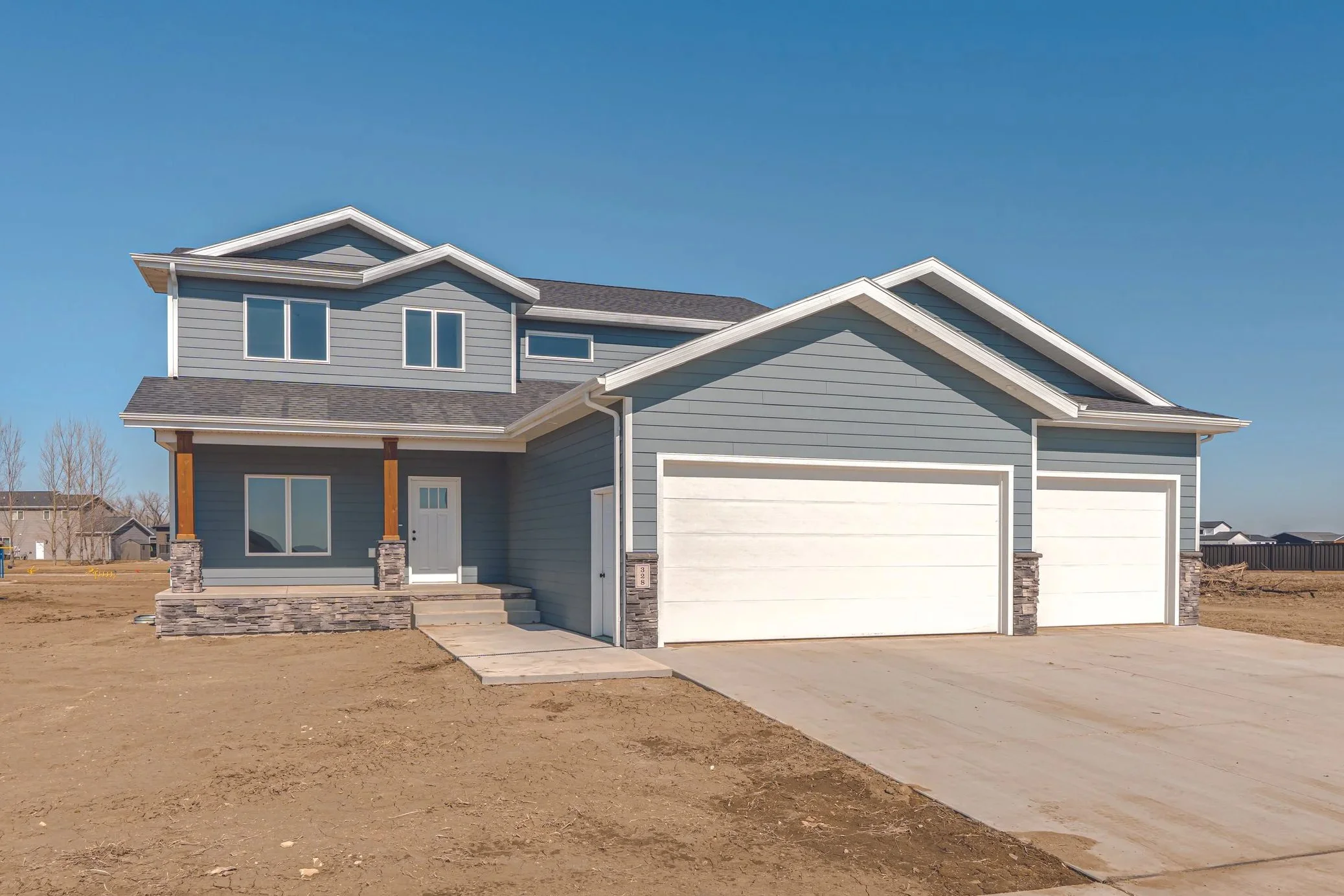 Welcome to this wonderful two-story home with a covered porch thoughtfully designed with modern style and everyday functionality. The main floor features a dedicated office, perfect for working from home, along with a warm and inviting living room complete with fireplace and custom-built-in shelving. The heart of the home is the spacious kitchen, featuring a large quartz center island, custom cabinetry, and a walk-in pantry. The adjoining dining area offers patio doors that lead to the exterior patio, making indoor-outdoor entertaining a breeze. There is a 1/2 bath and closet storage just off the garage entrance. The triple garage offers a utility sink, water, floor drain and openers. Upstairs, you’ll find three bedrooms, including a beautiful primary suite with a large vanity, dual sinks, and a private bathroom featuring a step-in shower with a built-in seat. Conveniently located on this level is the laundry room, complete with sink and built in cabinets. The unfinished lower level provides endless possibilities, already designed to accommodate two additional bedrooms, a bathroom, and a spacious family room, allowing you to customize and expand to fit your needs. This home blends quality craftsmanship with modern comfort.